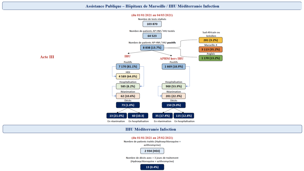 Fait rigolo : Si on va voir le dernier tableau récap de l'IHU on voit 73 morts et 7170 dépistés positifs, soit environ 1% de mortalité, soit la moyenne française d'après Agora. Malgré leur traitement miracle.